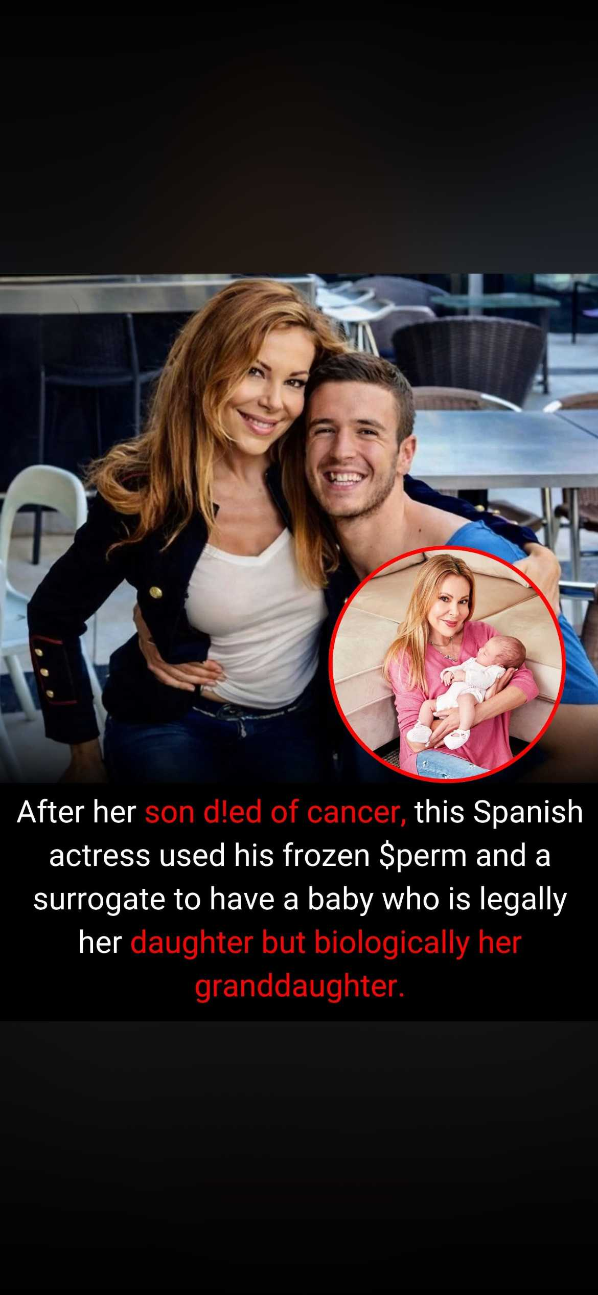 Spanish actress and television presenter Ana Obregón made international headlines in 2023 after revealing that she had a baby through surrogacy using the frozen $perm of her late son, Aless Lequio. Aless passed away of cancer in 2020 at the age of 27. Before his demise, he had preserved his $perm as part of his medical treatment. According to Obregón, fulfilling his wish to have a child became a way for her to cope with her grief.