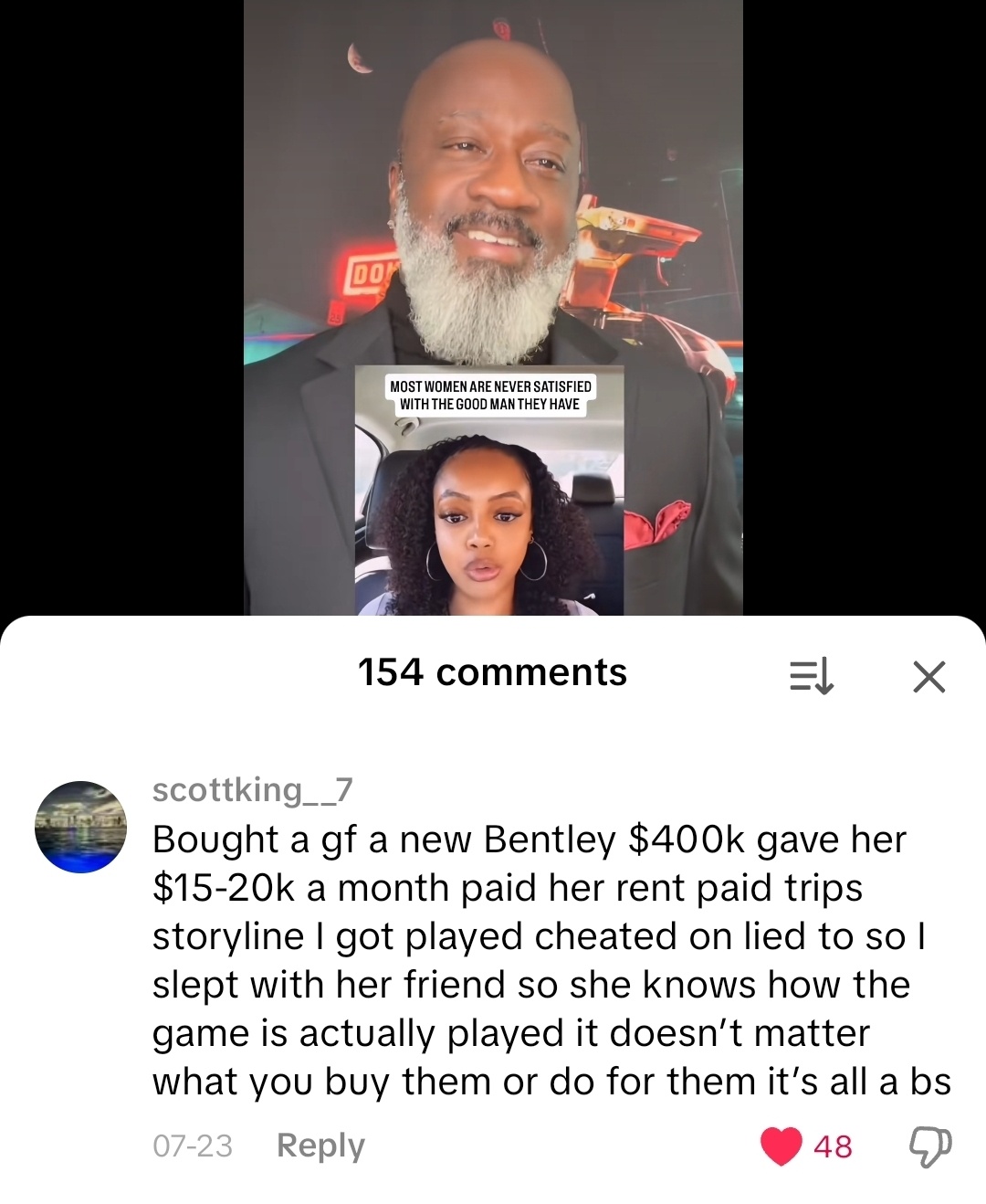 Seen this comment under 1 of @CoachGregAdams comments on TikTok a d the guy seems legit... crazy how a women can have it all and still can't be satisfied. She probably think its gonna be another guy until it wont