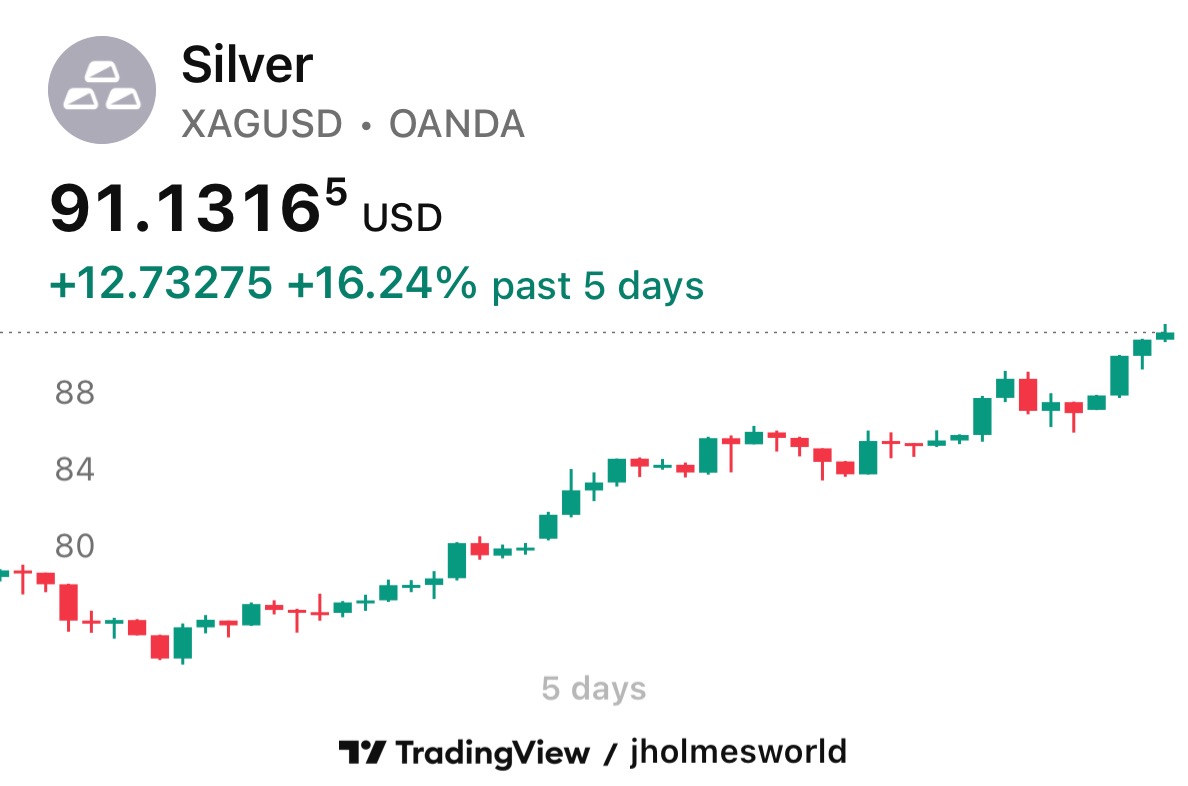 Given the change in collateral requirements at the CME, I have to wonder if this is a setup for a rug pull. $91 silver was unthinkable 5 years ago.
