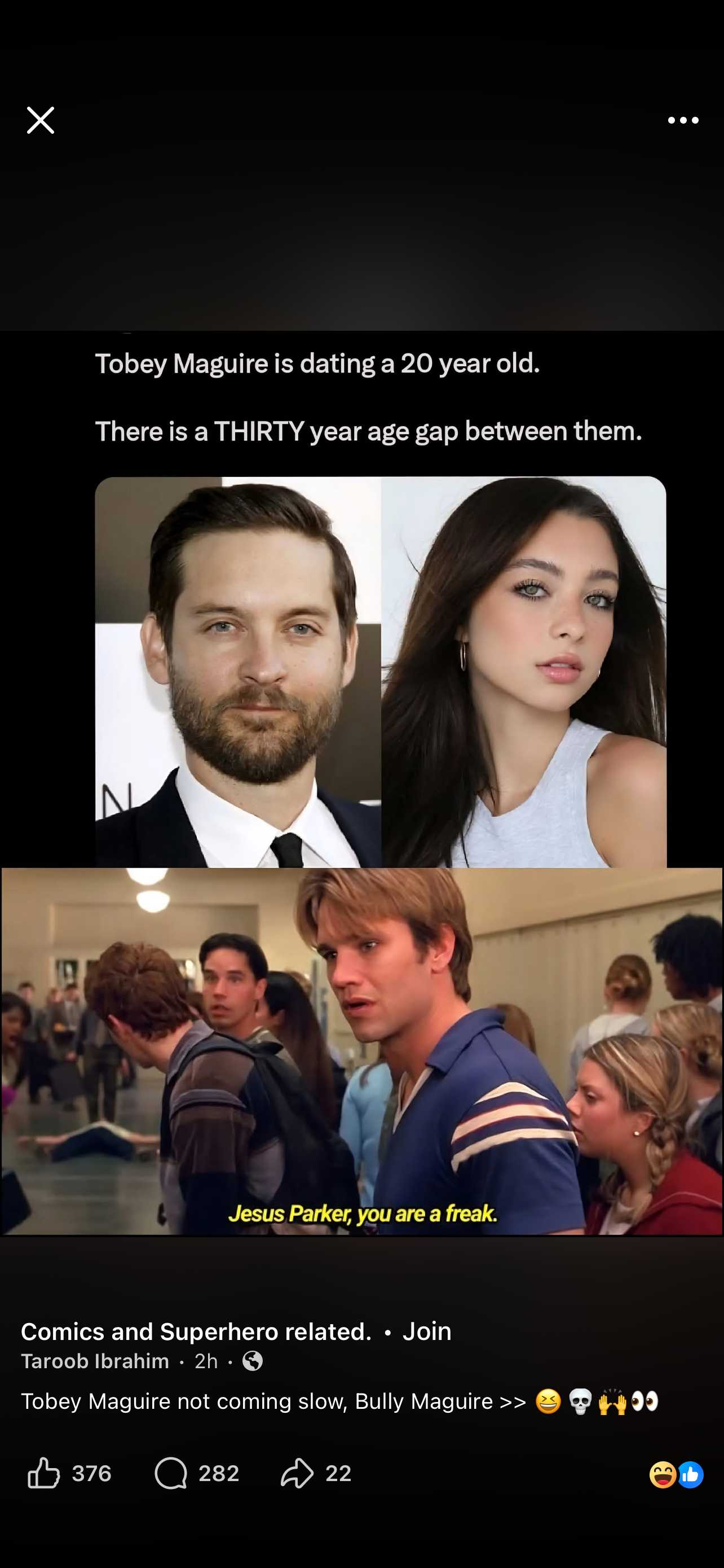 Man that woman is grown. Let Spider-man get him some. 😂They really got a problem with men having leverage.